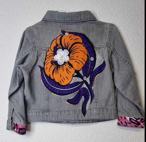 Création MuToTo : veste denim personnalisée patchwork wax 4 - 5 ans